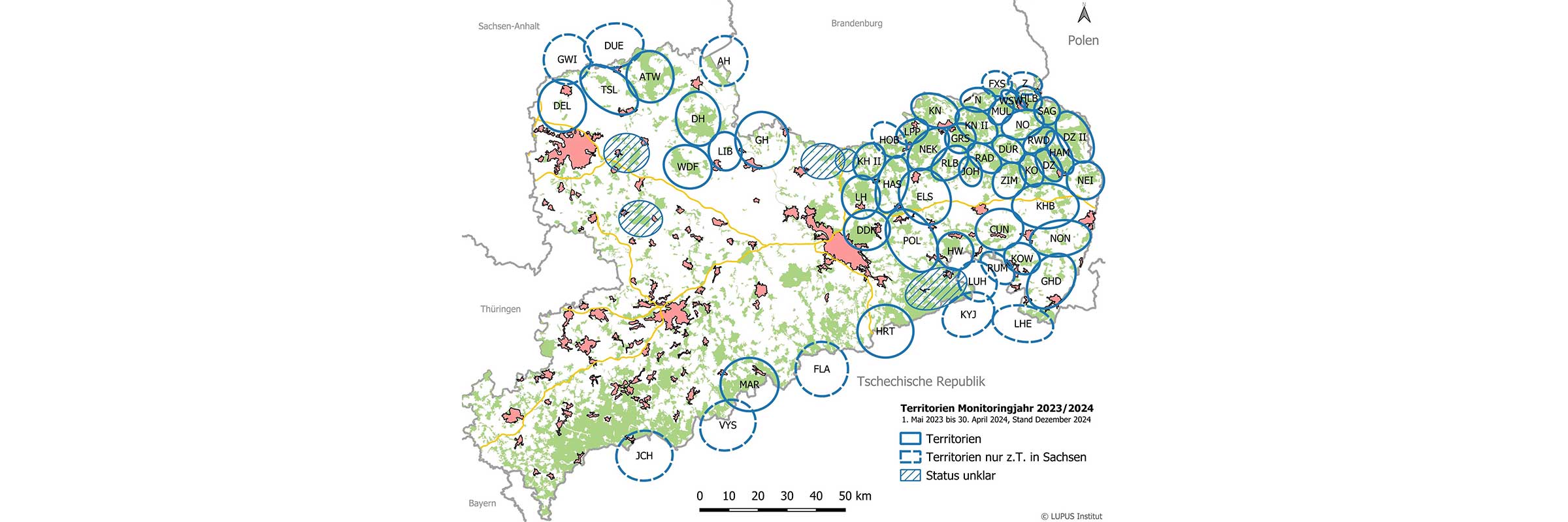 Das LUPUS Institut erforscht und überwacht die natürliche Wiederansiedlung der Wölfe in Deutschland. In Sachsen führt es das Wolfsmonitoring für das Landesamt für Umwelt, Landwirtschaft und Geologie (LfULG) und in Südostbrandenburg im Auftrag des Landesamtes für Umwelt, Brandenburg durch. Darüber hinaus leistet es im Rahmen der Dokumentations- und Beratungsstelle des Bundes zum Thema Wolf (DBBW) für andere Bundesländer fachliche Beratung zu Fragen von Wolfsmonitoring und Wolfsverhalten.